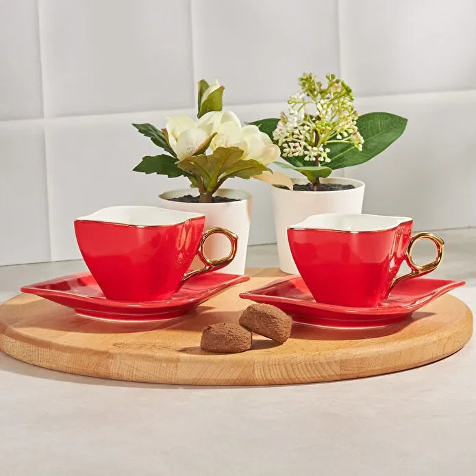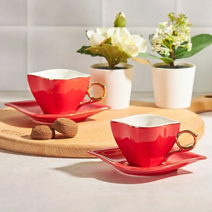 Emsan Sonsuz A?k 2 Person Coffee Cup Set Red