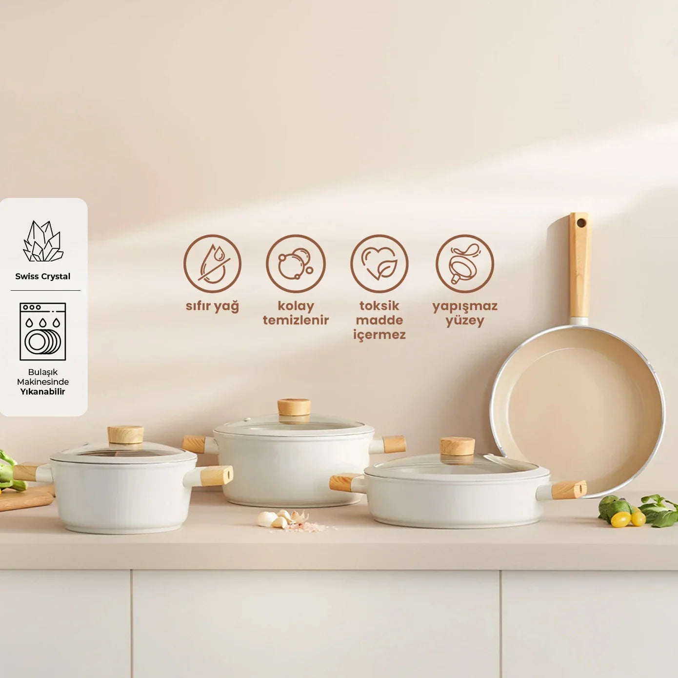 The Swiss Crystal Series draws its strength from Swiss crystal, offering exceptional non-stick performance and enhancing flavor