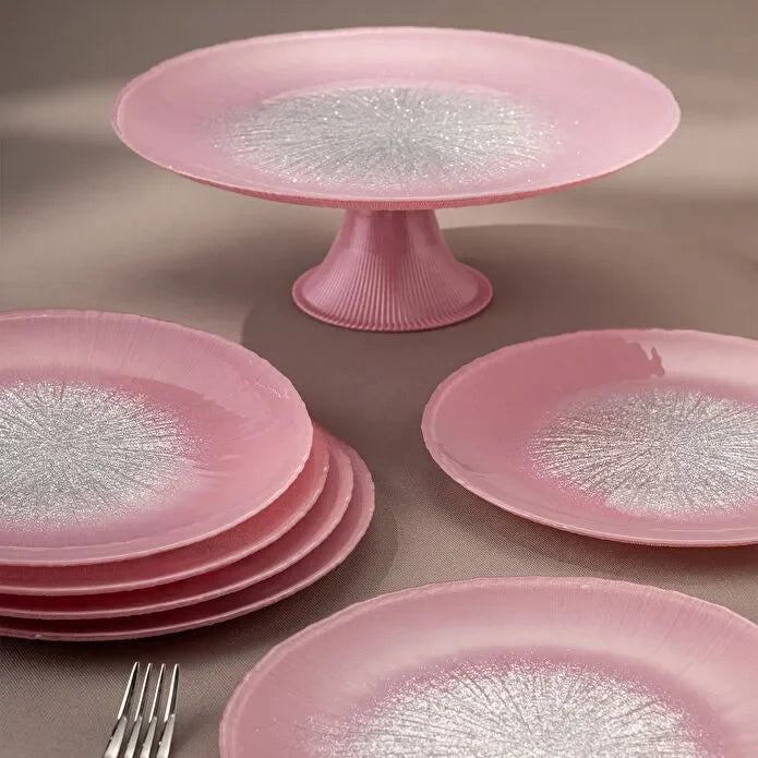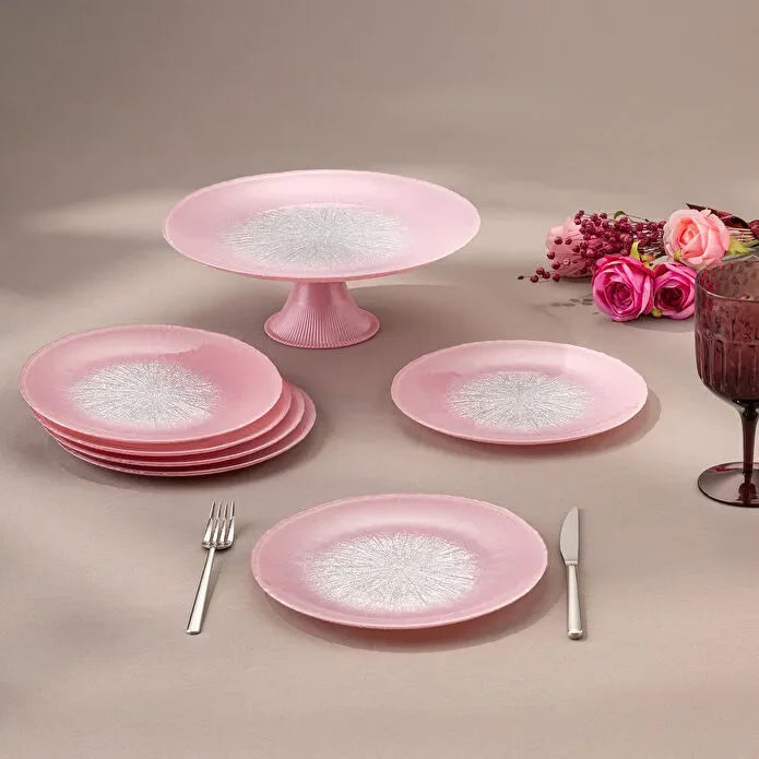Emsan Pastel 7 Piece Glass Cake Set Pink